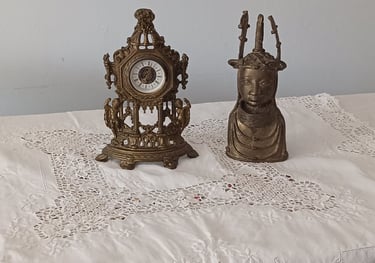 Ένας βασιλιάς Μπένιν Benin (ύψους 22 εκ ) και ένα ρολόι ( ύψους 23 εκ ) που θα χρειαστεί επισκευή … από μπρούτζο . Τιμή πώλησης 300- 400 ευρώ